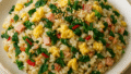 - 火を止め、刻んだディル(またはフェンネルの葉)と松の実を散らす。