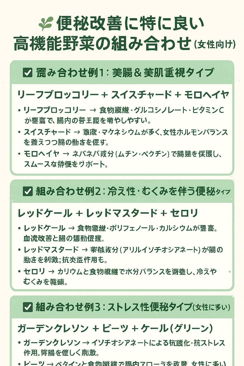 🌿便秘改善に特に良い高機能野菜の組み合わせ(女性向け)